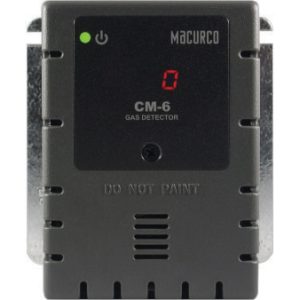 Detector MACURCO CM-6 diseñado para monitoreo continuo de monóxido de carbono en parqueaderos y áreas técnicas.